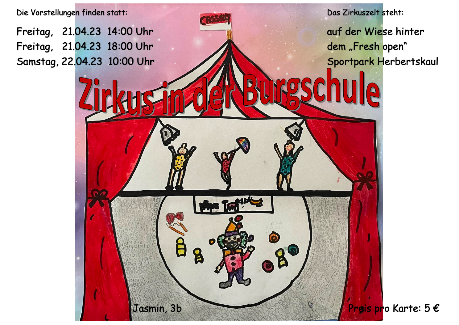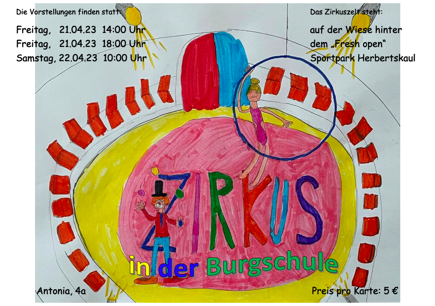 Auch in diesem Jahr war das Zirkusprojekt, welches an unserer Burgschule alle vier Jahre durchgeführt wird, mal wieder ein absolutes Highlight. Schon am Montag, als der Zirkus Jonny Casselly Junior (www.jonnycasselly.de) eine Extravorstellung für unsere Schule gab, konnte man überall leuchtende Augen sehen und erstaunte Rufe hören. In insgesamt neun Workshops wurden unsere Burgschulkinder von Dienstag bis Freitag zu Zirkusstars ausgebildet. Es hat uns allen sehr viel Spaß gemacht, Zirkusluft zu schnuppern!