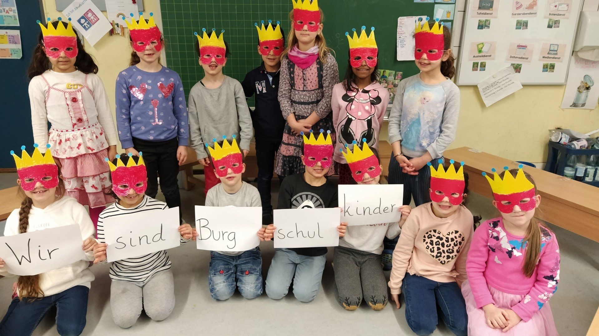 In der Burgschule fühlen sich alle Kinder wohl. Wir besprechen Monatsmottos. Jedes Kind wird gut behandelt und alle verstehen sich gut miteinander. Es gibt tolle und interessante Sachen im Unterricht und in der OGS. An Halloween, Weihnachten und anderen Festtagen wird schön gefeiert. Die Fächer sind interessant und gut. Es wird gut und gründlich gelernt und unterrichtet. Besucht unsere Burgschule!“