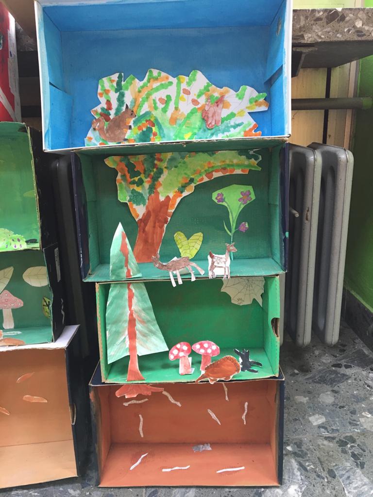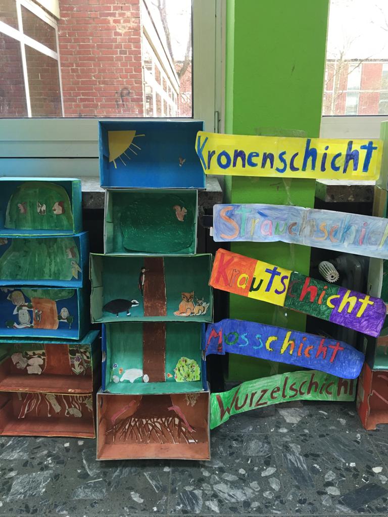 Dazu haben sie die Stockwerke des Waldes mit Hilfe von Schuhkartons dargestellt.