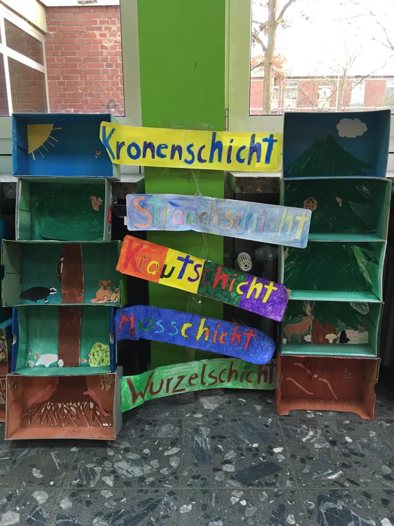 Dazu haben sie die Stockwerke des Waldes mit Hilfe von Schuhkartons dargestellt.