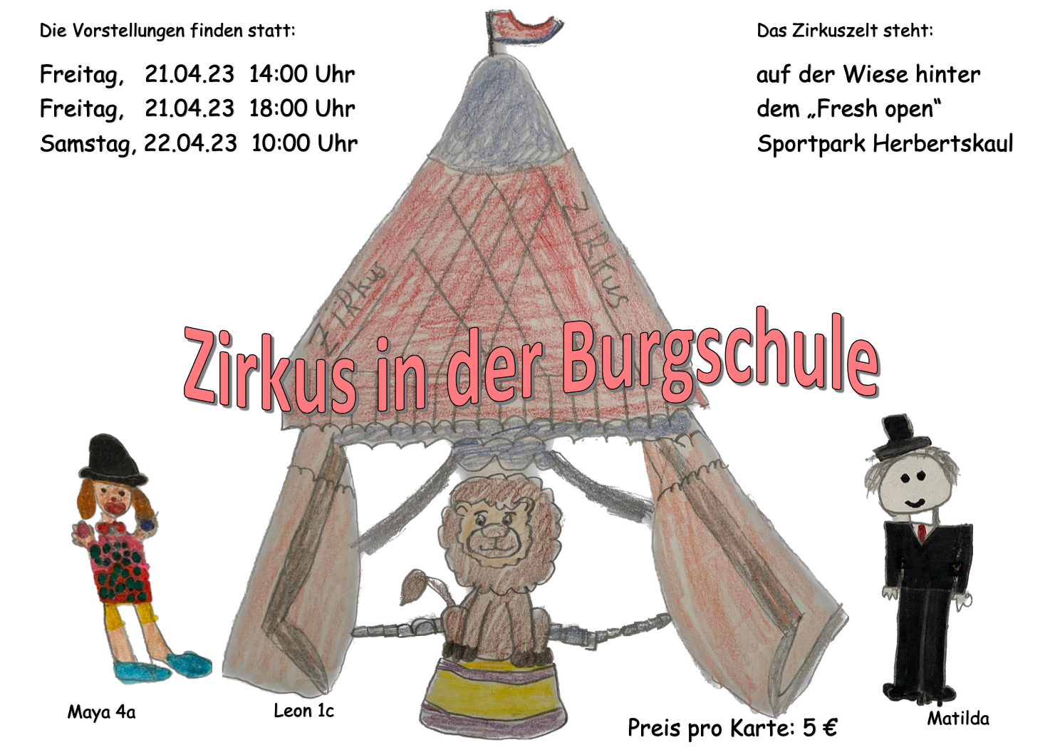 Auch in diesem Jahr war das Zirkusprojekt, welches an unserer Burgschule alle vier Jahre durchgeführt wird, mal wieder ein absolutes Highlight. Schon am Montag, als der Zirkus Jonny Casselly Junior (www.jonnycasselly.de) eine Extravorstellung für unsere Schule gab, konnte man überall leuchtende Augen sehen und erstaunte Rufe hören. In insgesamt neun Workshops wurden unsere Burgschulkinder von Dienstag bis Freitag zu Zirkusstars ausgebildet. Es hat uns allen sehr viel Spaß gemacht, Zirkusluft zu schnuppern!
