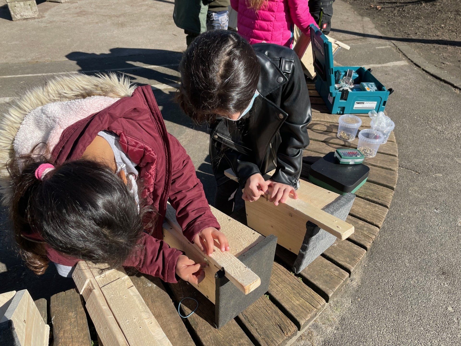 Die Bank wurde von unserem Hausmeister, Herrn Lennartz, abmontiert und die Bretter wurden abgeschliffen. (Vielen Dank an ihn für seine tatkräftige Unterstützung!) Im Kunstunterricht gestalteten die Kinder der 4a und 4c Entwürfe, wie eine Freundschaftsbank aussehen könnte. Danach stimmten alle Kinder ab, welcher Entwurf umgesetzt werden sollte.