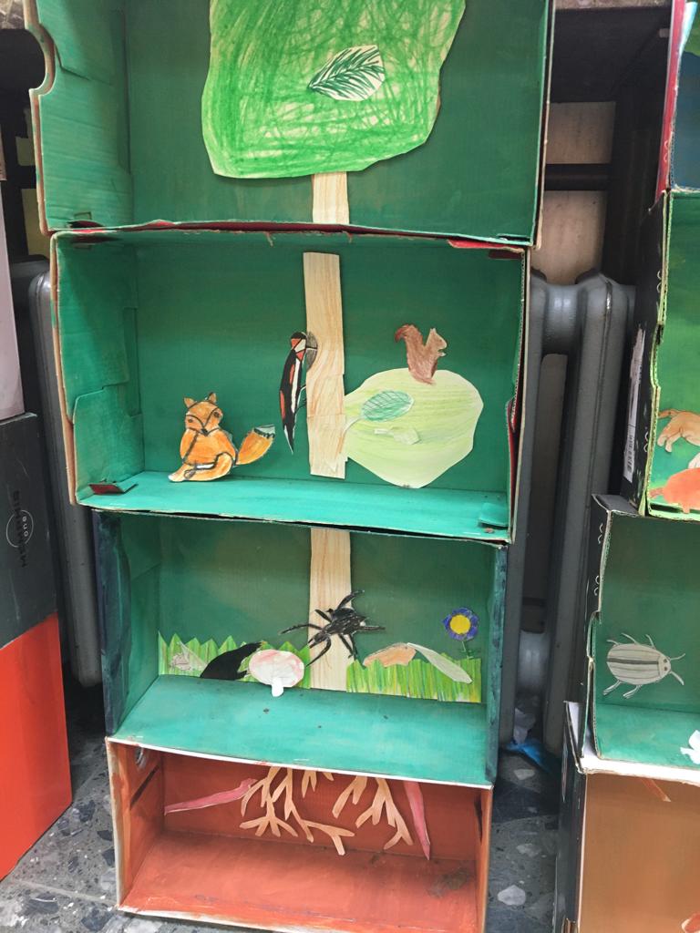 Dazu haben sie die Stockwerke des Waldes mit Hilfe von Schuhkartons dargestellt.